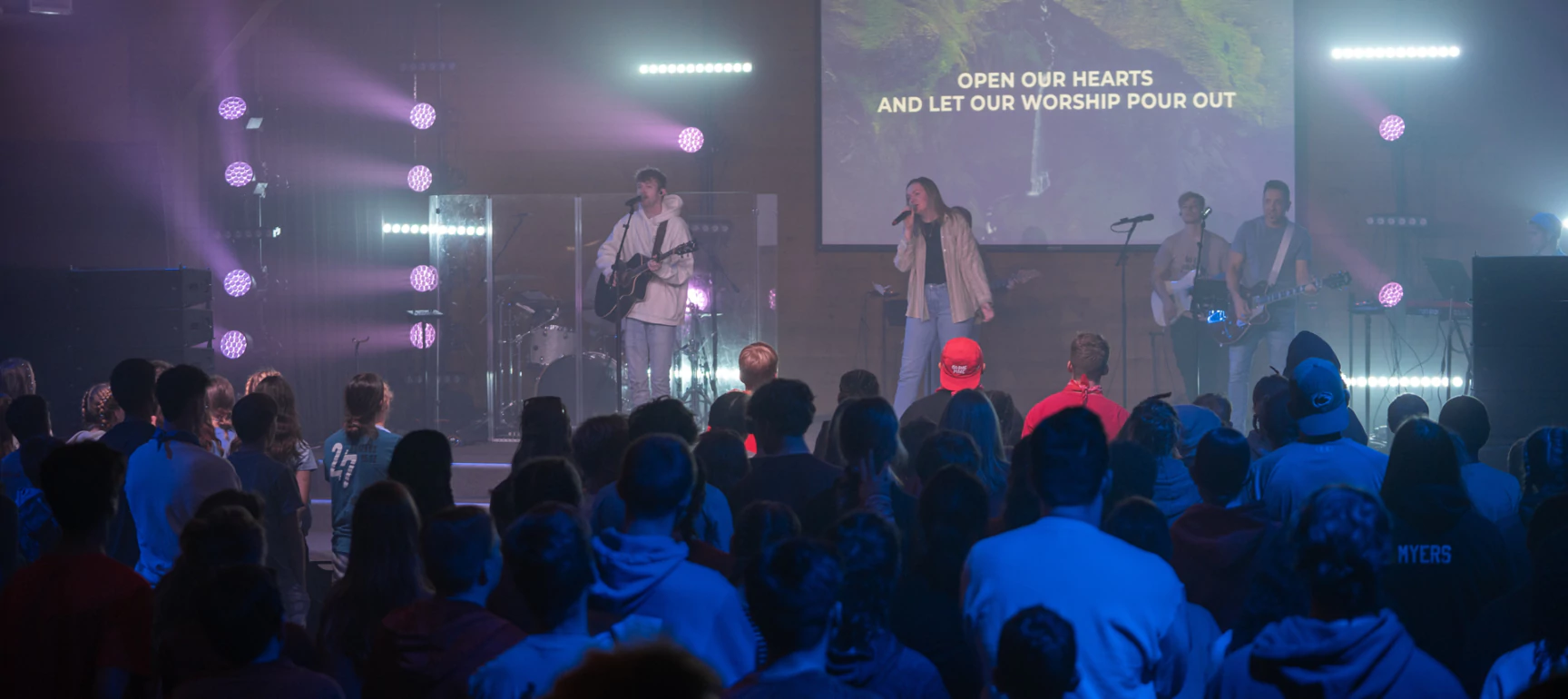 Middle school students begin the night with large group games in the gym, move to a time of teaching, and then are dismissed to their groups. High school students begin with a time of teaching and then are dismissed to group time. Through biblical teaching and small group discussion, students have the opportunity to grow deeper in their walk with God, grow together in community, and grow in service for our God.